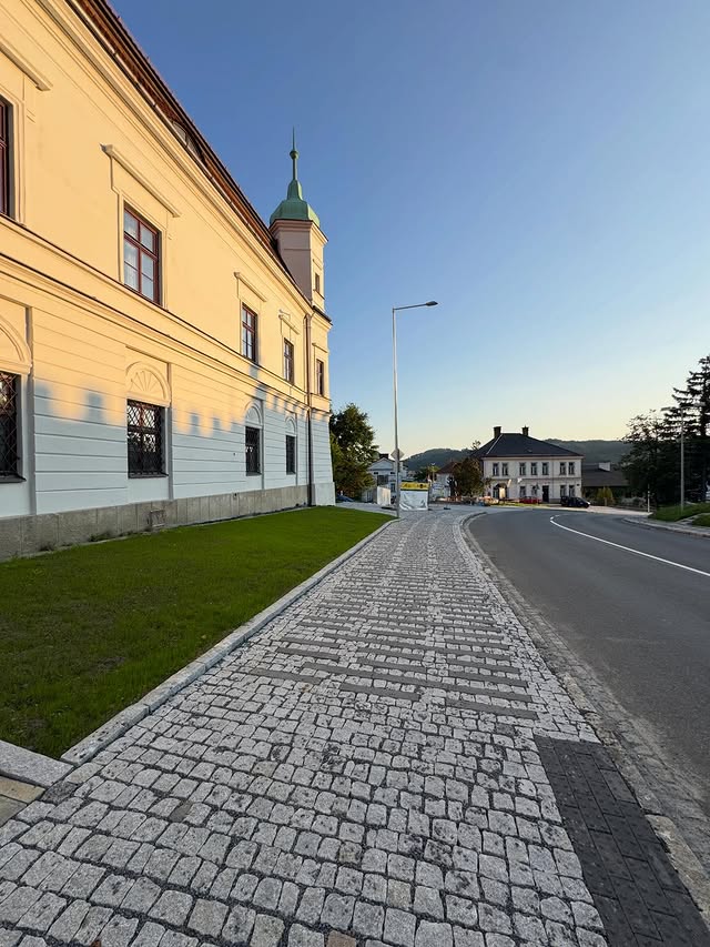 Výsledkem je moderní, funkční a zároveň důstojný veřejný prostor, který respektuje historický charakter zámeckého areálu a zároveň odpovídá současným nárokům na bezpečnost a komfort.