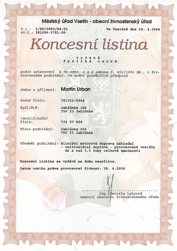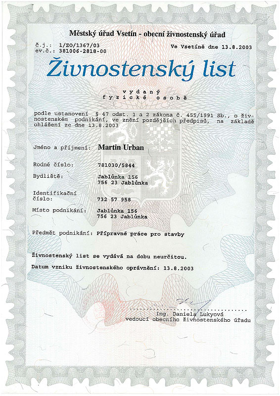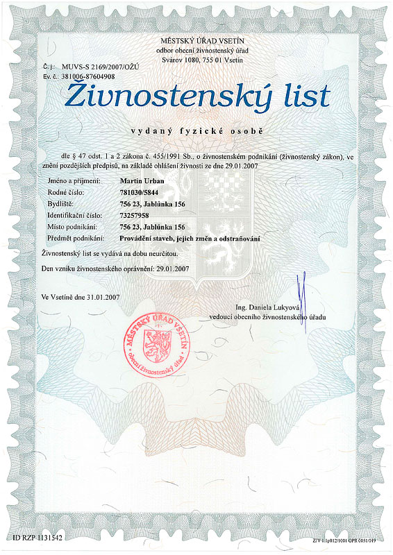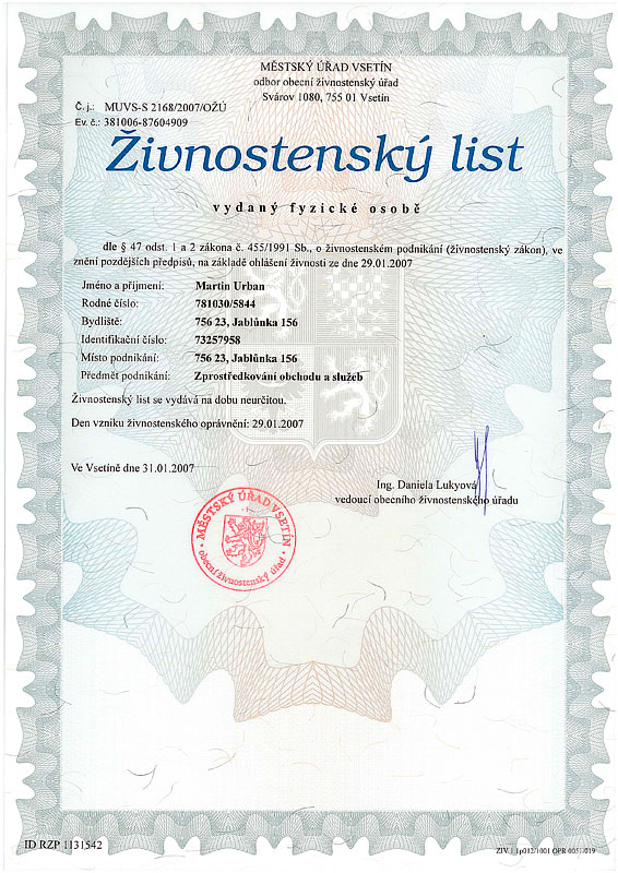 ŽIVNOSTENSKÉ OPRÁVNĚNÍ